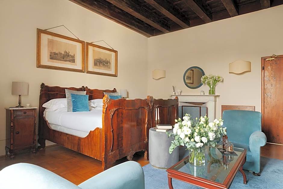 Large room with antique furniture and view of the square or garden. With air conditioning, free WiFi and satellite TV.